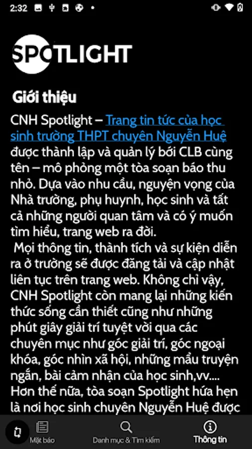 CNH Spotlight – News page for students of Nguyen Hue High School for the Gifted was established and managed by the club of the same name – simulating a small newspaper office. Based on the needs and aspirations of the School, parents, students, and all those interested in our school, the website was born.
