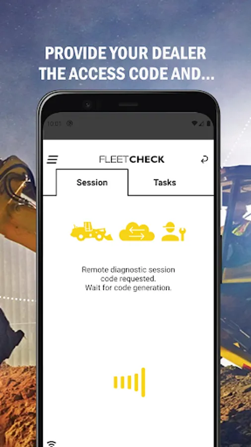 • Start a diagnostic session, provide your Dealer the access code, and your machine’s connected directly with your dealers diagnostic hub.