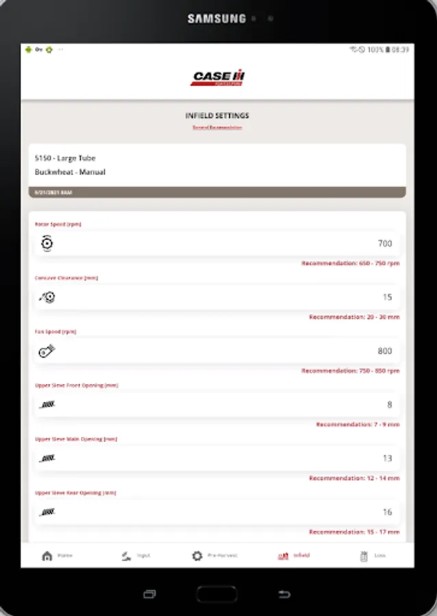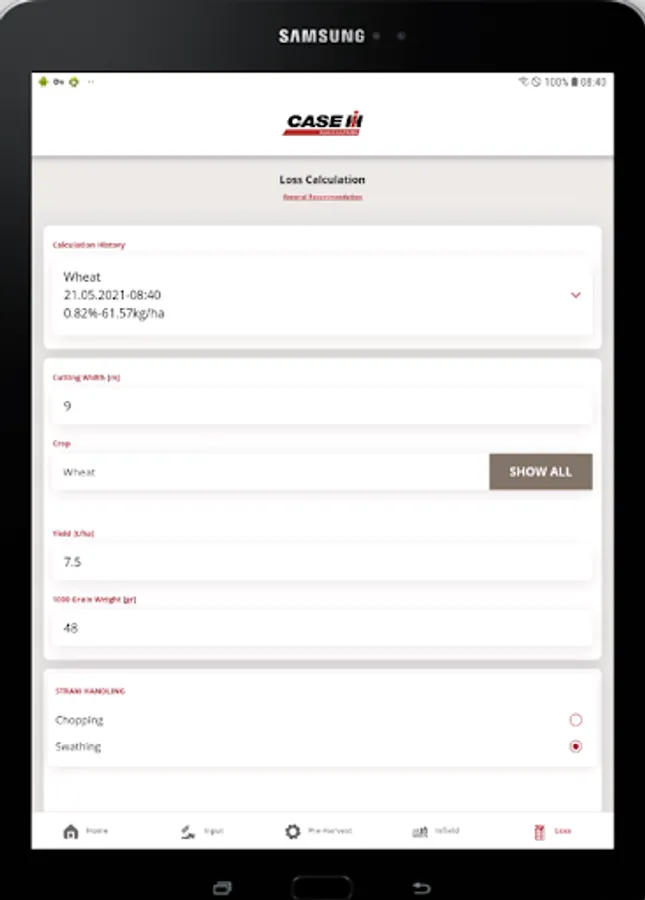 This App is intended to be used to further boost the productivity of your Axial-Flow combine. The setting recommendations provide suitable initial settings for various crops for the different Axial-Flow models and specific machine configurations. Recommendations can be customized (fine-tuned), stored and recalled at any time. With the integrated “optimization” function, the operator receives proper suggestions for reacting to different issues, which might be faced during harvesting (losses, limit capacity, etc.). The loss calculator provides a sophisticated tool for accurately analyzing grain losses.