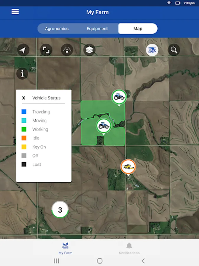 - View all of your farm’s field boundaries and receive turn by turn directions to fields