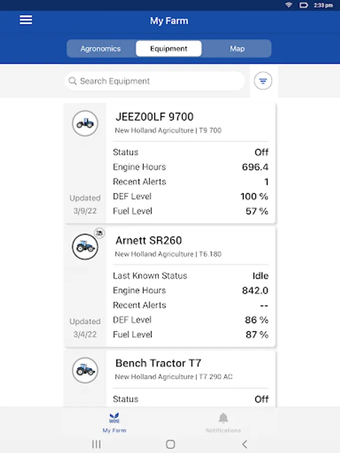 The New Holland MyPLM Connect Farm application will allow you to make better decisions about your farm from anywhere. With more analytics at your fingertips, your New Holland MyPLM Connect Farm application will help lower your input costs, boost your yield and maximize your farm management throughout this season and the next.