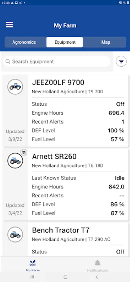 The New Holland MyPLM Connect Farm application is a key extension to your MyPLM Connect online account.