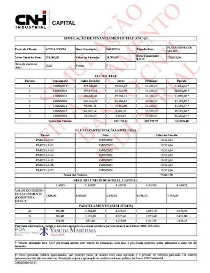 The CNH Industrial Bank offers various financing options from transfer lines from BNDES, to special lines of credit, such as CDC for imported; as well as speed in credit approval without opening account funding and handled machines at the dealership.