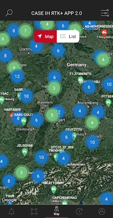 Dedicated to the CASE IH owners, this App allows to check the status of all reference stations worldwide. In addition, it allows to check the status of each rover. By clicking on a rover, a detailed window pops-up displaying lot of information of the rover. This helps the user of the App to see the status of the rover, the number of satellites used, how long it has been connected...