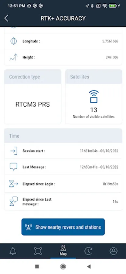 Dedicated to the RAVEN owners, this App allows to check the status of all reference stations worldwide. In addition, it allows to check the status of each rover. By clicking on a rover, a detailed window pops-up displaying lot of information of the rover. This helps the user of the App to see the status of the rover, the number of satellites used, how long it has been connected...