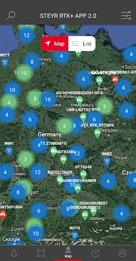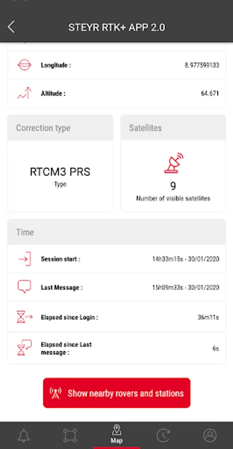 Dedicated to the STEYR owners, this App allows to check the status of all reference stations worldwide. In addition, it allows to check the status of each rover. By clicking on a rover, a detailed window pops-up displaying lot of information of the rover. This helps the user of the App to see the status of the rover, the number of satellites used, how long it has been connected...