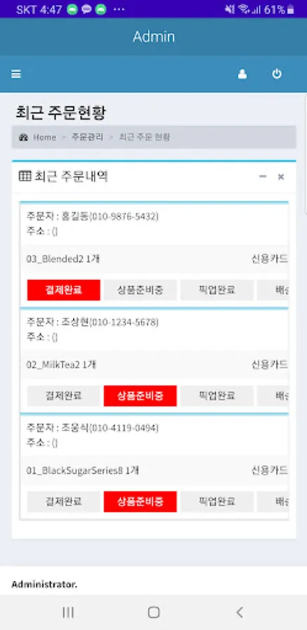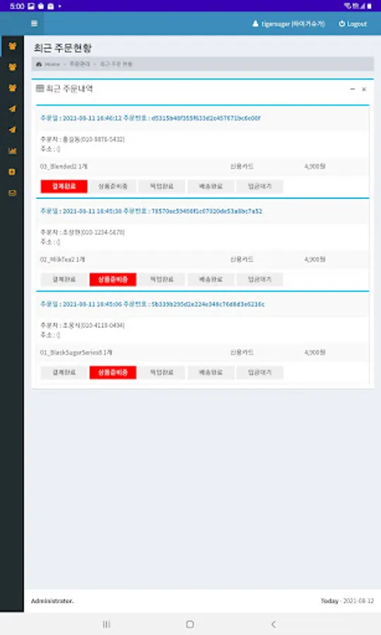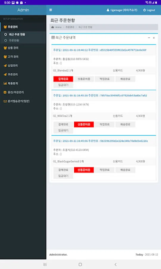 -A function to check customer order information and manage the progress of each stage such as product preparation and delivery