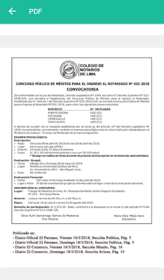 Mobile application of the notary public school of Lima