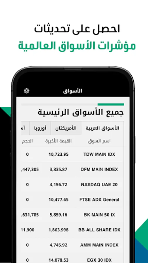 بيانات السوق: إحصل على آخر أسعار العملات، السلع، المعادن الثمينة، والأسهم الإقليمية.
