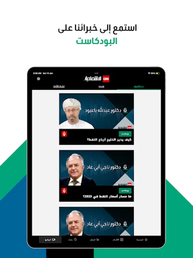اكتشف برامج الفيديو اليومية، والمحتوى التفاعلي المدعوم بالبيانات مع فريق متميز من المذيعين، المختصّين والضيوف.