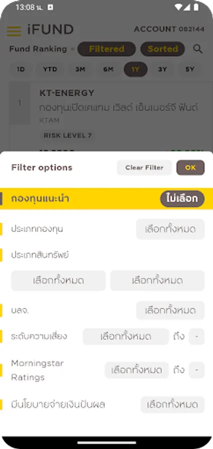 • ค้นหา เปรียบเทียบข้อมูลกองทุนรวมได้อย่างอิสระ เพื่อเลือกลงทุนในกองทุนที่ดีที่สุดตามโจทย์ที่ท่านต้องการ อาทิ เลือกเปรียบเทียบ ผลการดำเนินงานย้อนหลัง ค้นหากองทุน 5 ดาวจาก Morning Star Rating