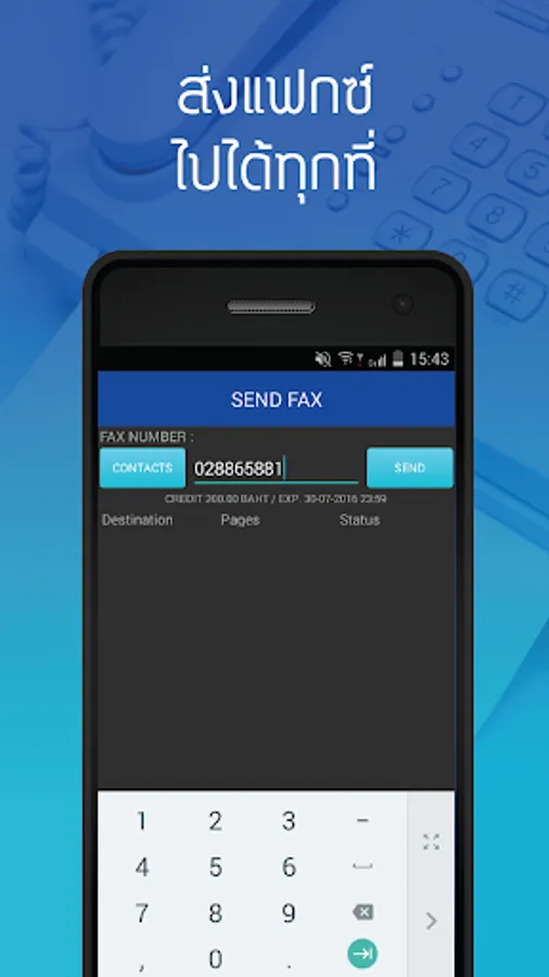 An application to receive - send fax via smartphone. This technology combines the old with the new era together. The link between the fax machines that use a landline number to a smart phone. To help facilitate and enhance work efficiency. You can communicate through fax form at any time through a smart phone. Apply for or get more information at 0-2433-4333.