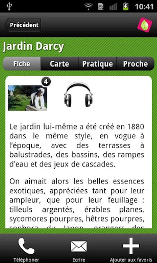 It allows you to locate and access a complete description, all practical information for visiting, with audio guides and slideshows.