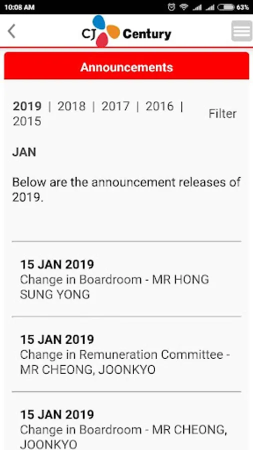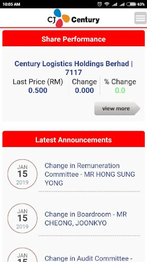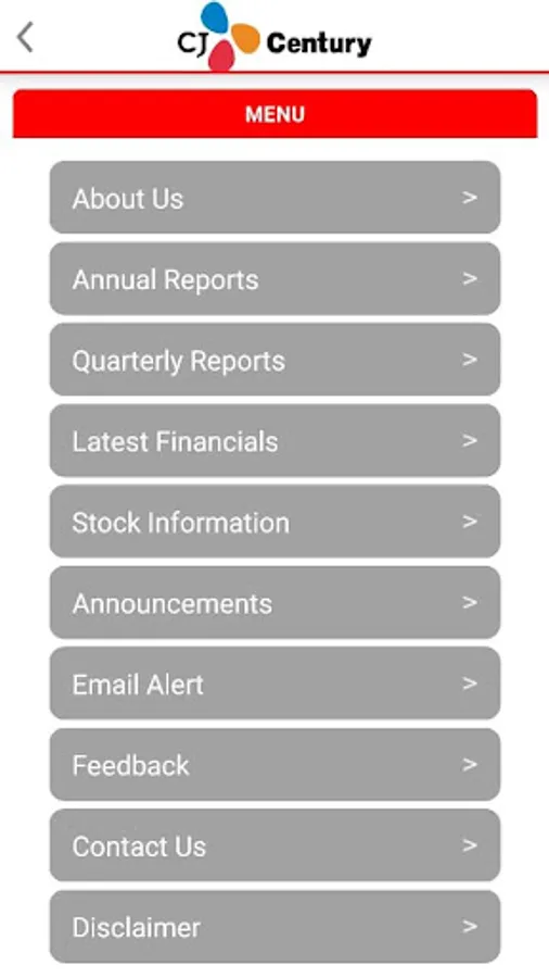 CJ Century Mobile Investor Relations (IR) App is designed with the above said in mind. It will allow the users to be notified and updated with crucial and essential information that are released to the Malaysia Stock Exchange, Bursa Malaysia Berhad. These include financial information, company reports, stock information, stock chart as well as company announcements. This is the perfect platform to have key information made available right in the palm of investors and users. All the information is updated instantly and as and when the company releases the relevant to Bursa Malaysia.