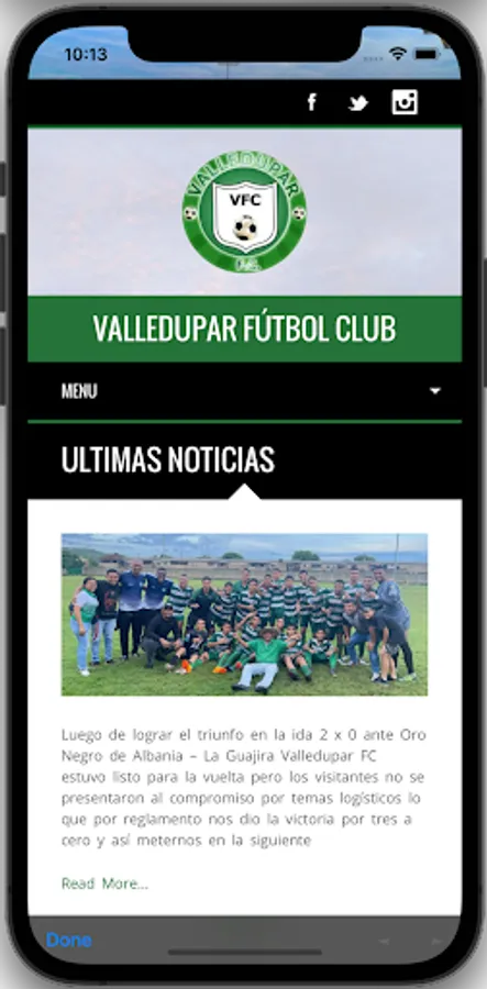 New APP of the Valledupar Soccer Club team.