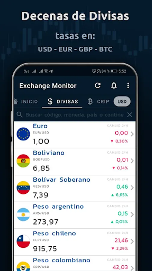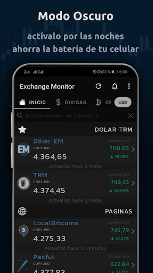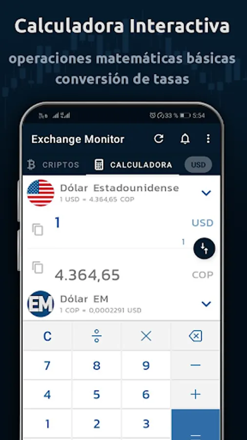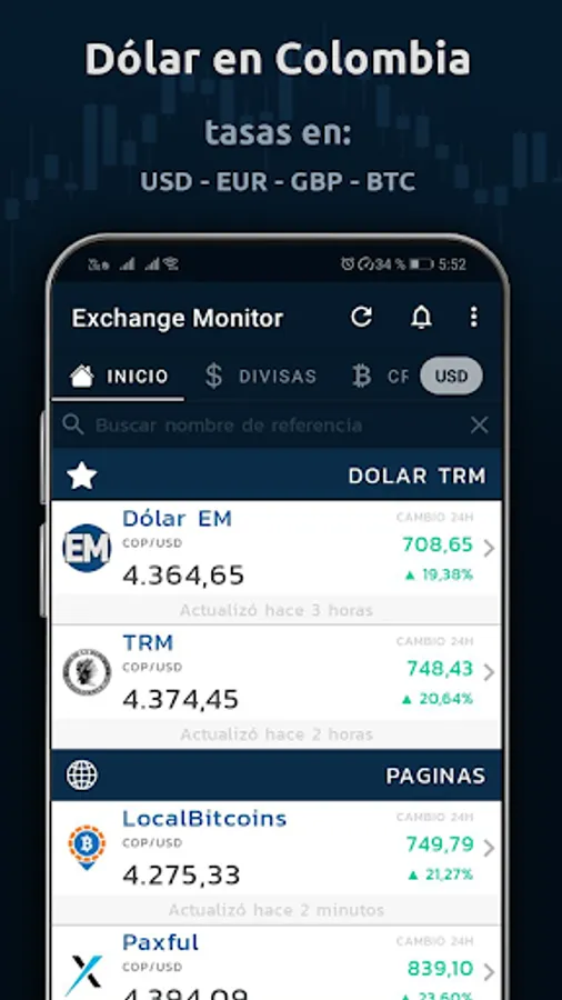 ⭐ Information search and filtering options for faster consultation, in addition to calculating all rates in the currency you prefer: dollar, euro, pound, bitcoin or any currency that is listed in the system (UNIQUE option only in Exchange Monitor Colombia ).