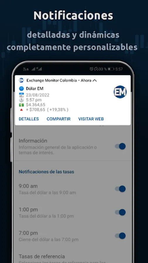 🇨🇴 Dollar TRM Colombia is an application designed by Exchange Monitor to know in real time the price of the Dollar in Colombia: Representative Market Rate (TRM, issued by the financial superintendence of Colombia), dollar in pages and purses, as well as dozens of international currencies and cryptocurrencies.
