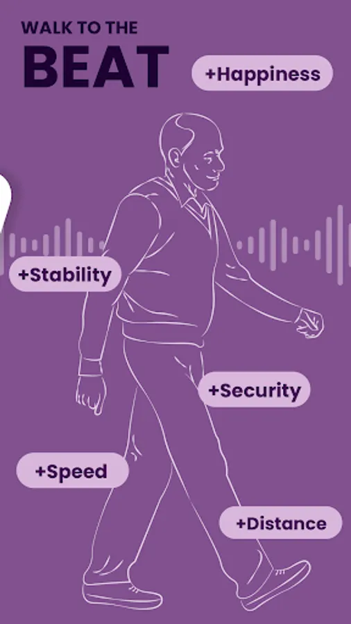 Through auditory stimuli we encourage the brain to increase the production of dopamine in a completely natural process, this can help people with movement disorders to walk again safely and freely. To achieve this, just register in our application, select the song of your preference and start walking to the rhythm of the music. You will begin to feel greater confidence and stability at every step.