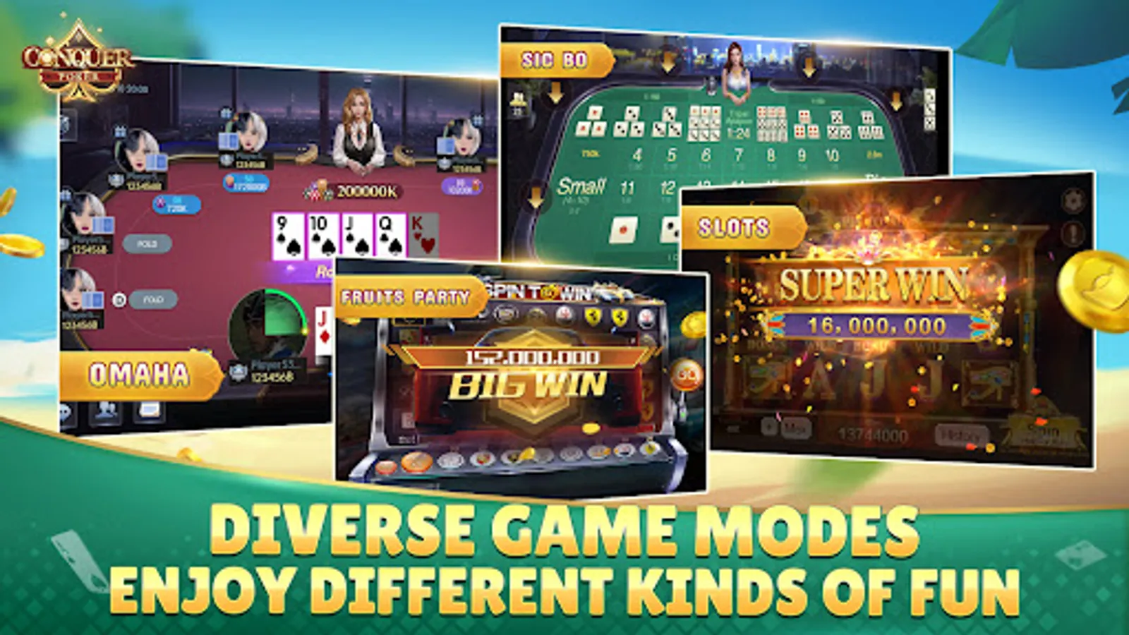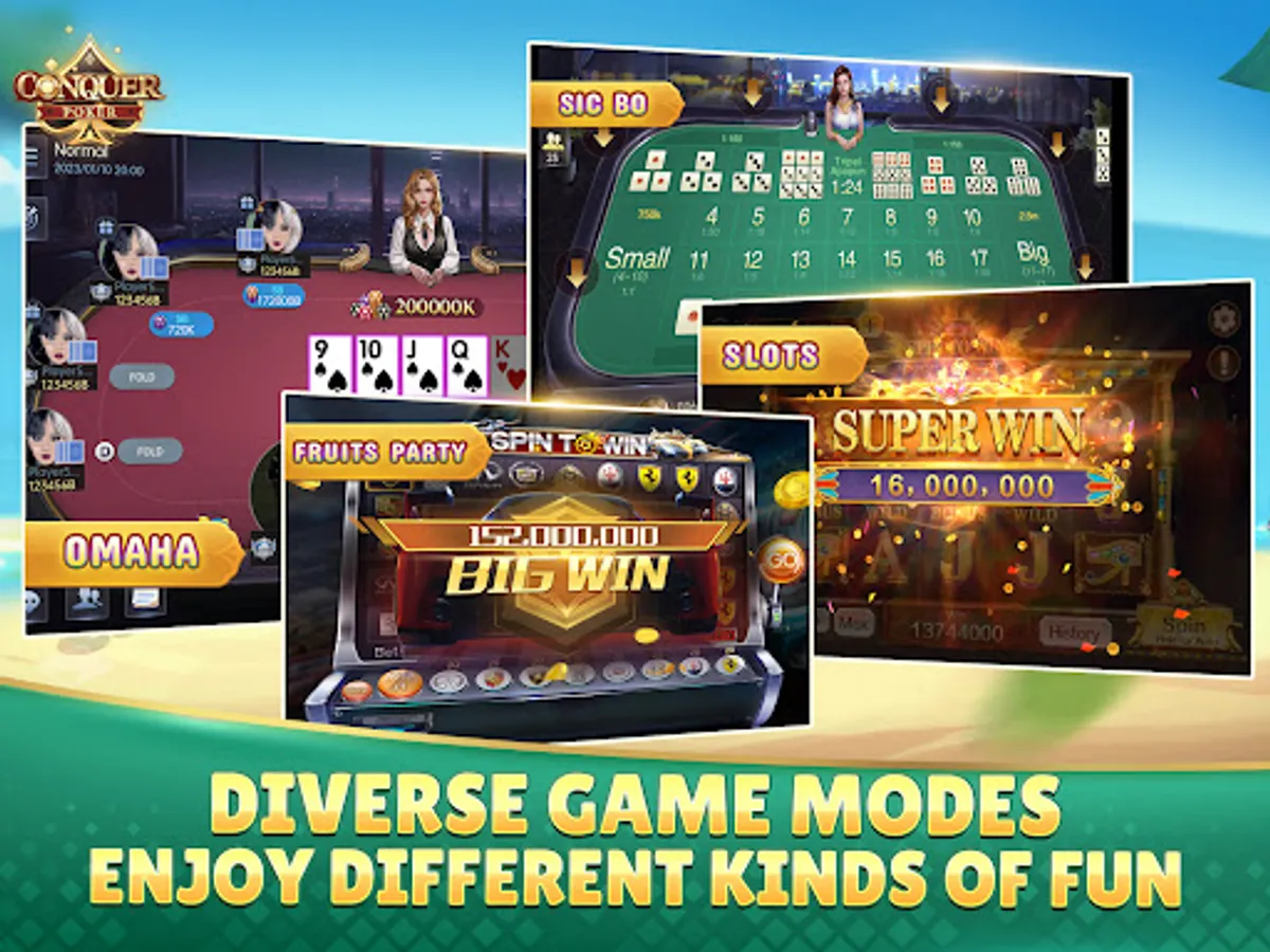 It’s time to let the fun begin with a thrilling and authentic gaming experience! Download Conquer Poker and start playing the classic poker games for free on your mobile phone now!
