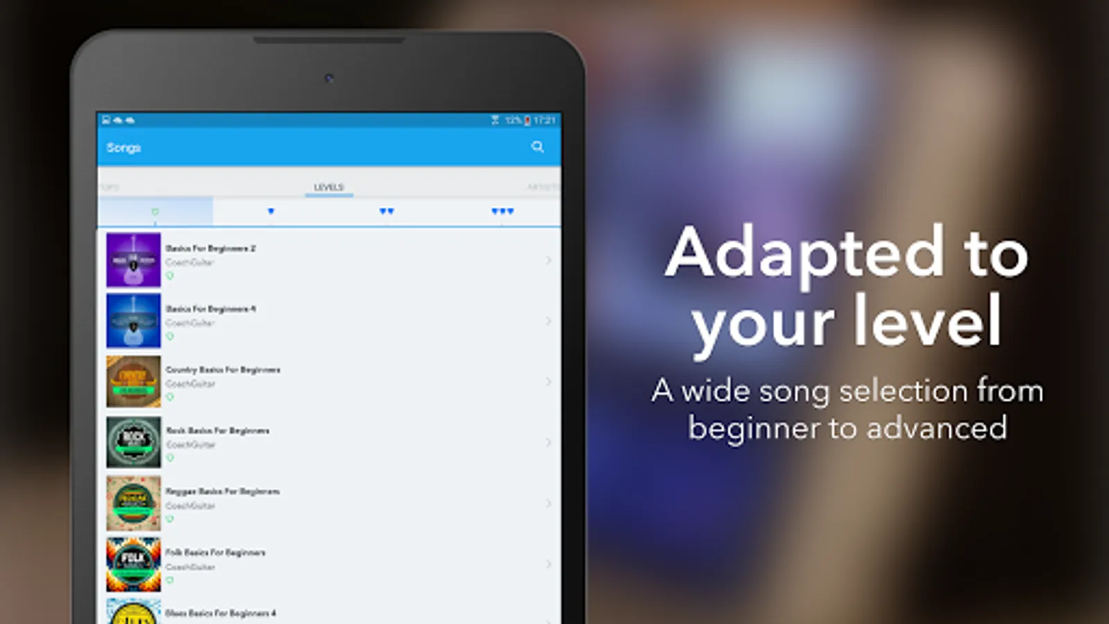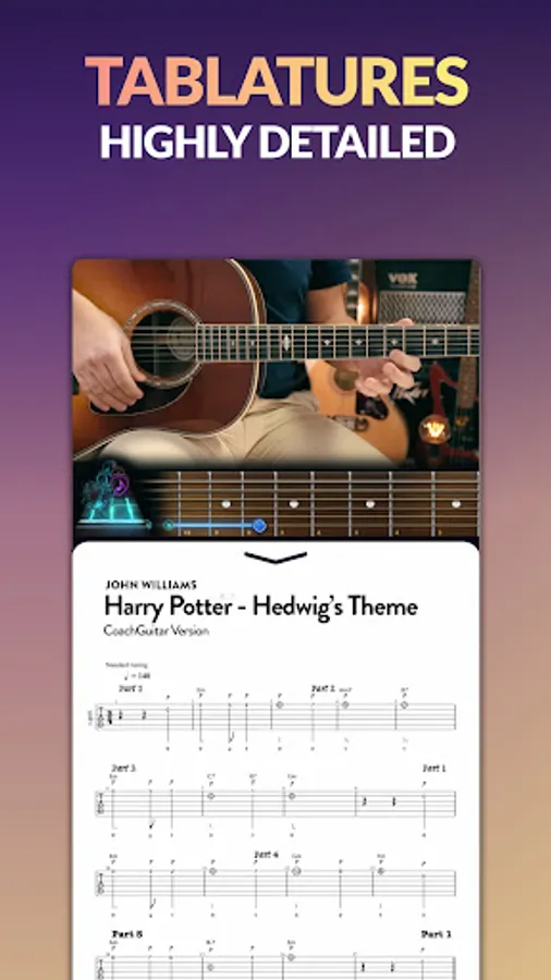 Coach Guitar becomes your personal guitar teacher. Itโs the unique visual teaching concept with colors. No music theory, we show you step-by-step videos lessons with animated fretboard. You learn to play guitar songs immediately by mimicry. Created by experienced guitar teachers, our guitar lessons will help musicians of all levels improve in record time, whether you are a complete beginner, intermediate or experienced.