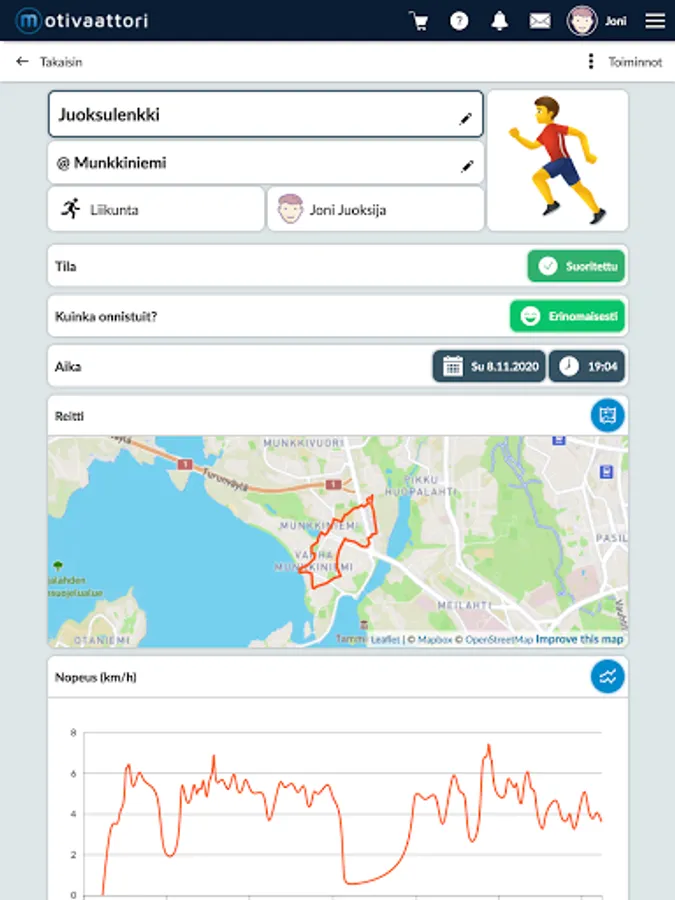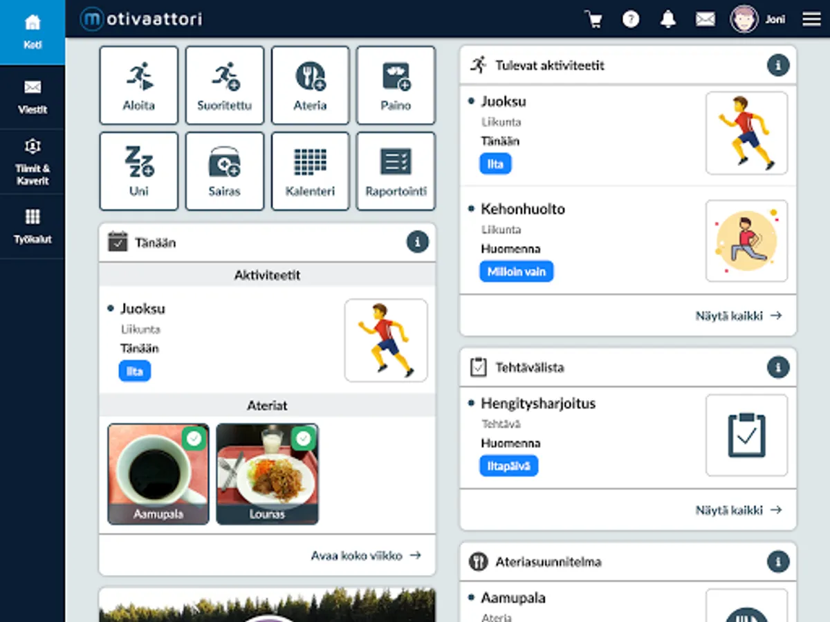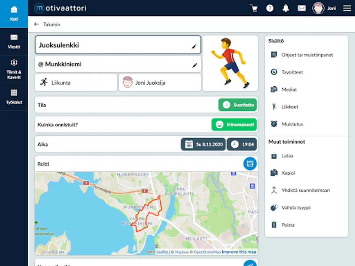 The Motivator app is a coaching platform for Kuortane Sports College's Own Best for well-being coaching and their clients.