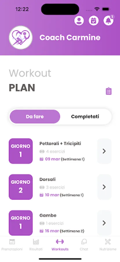 Coach Carmine is the platform that allows you to have all the features related to coaching and online coaching. You will be able to interact with me to receive useful feedback on your training program, monitor your progress and share it by speeding up times and having everything directly on your smartphone.