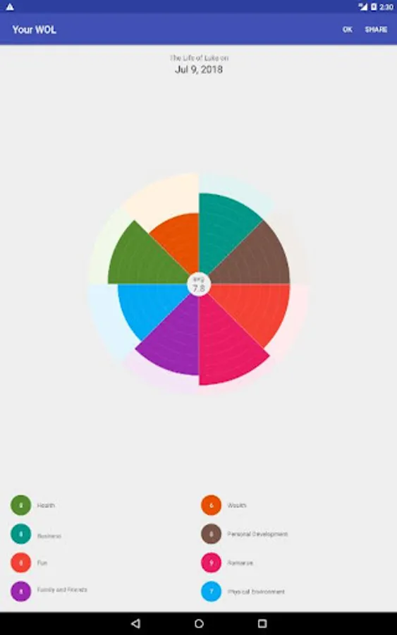 Once completed, you simply observe your WOL. If you see that some areas of your Life scored very LOW, then that is an indication of where you could focus your energy, to start taking positive action, right now. Think about the wheel of a car. If the wheel isn't 'balanced', your journey to your destination will be an uncomfortable & difficult one. It's the same with your WOL. You want it to be balanced, and you want it to GROW !!