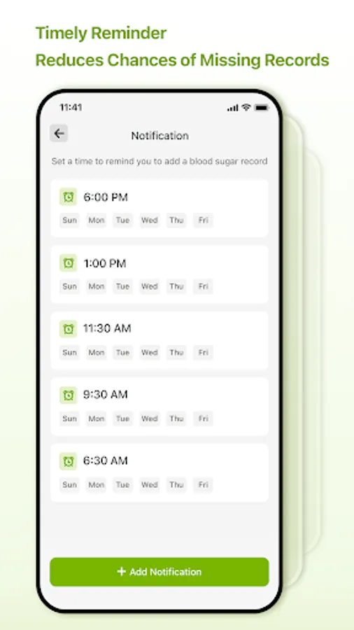 ● Reminders can be set to make sure you check your blood sugar on time every time.
