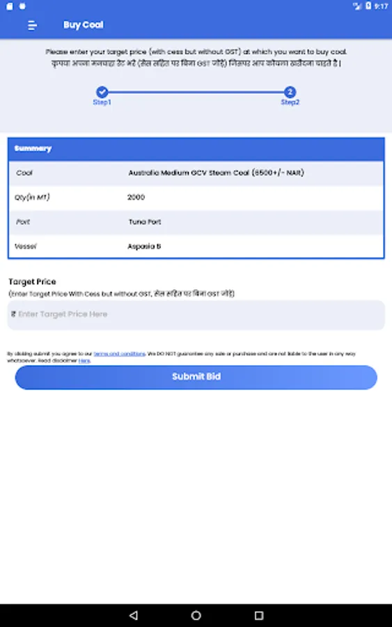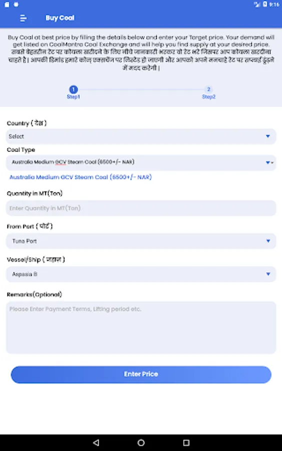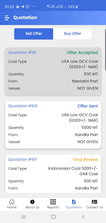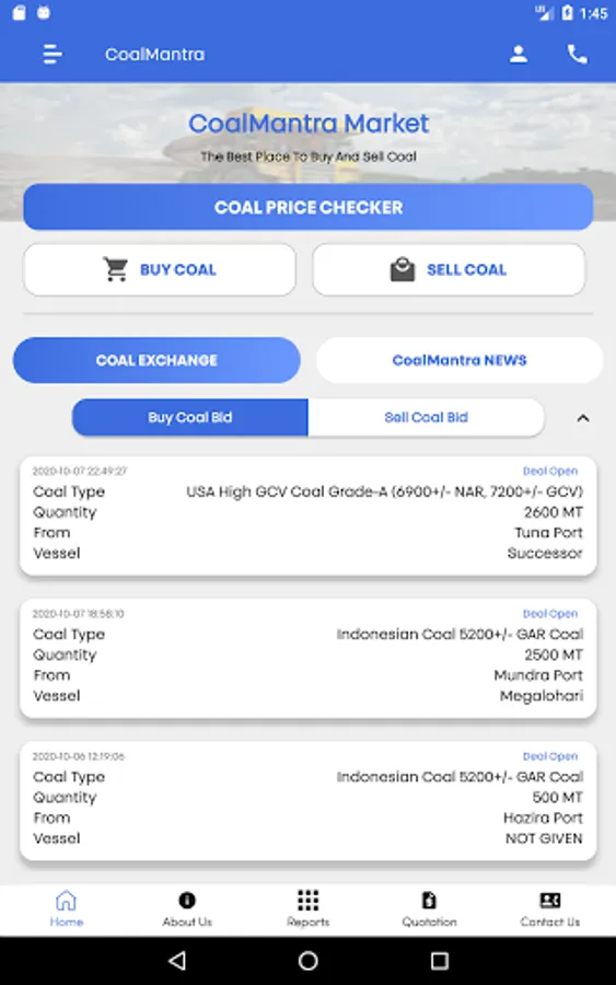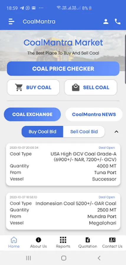 3. 'Coal Quotations' can be responded and deals can be finalized on the app itself.