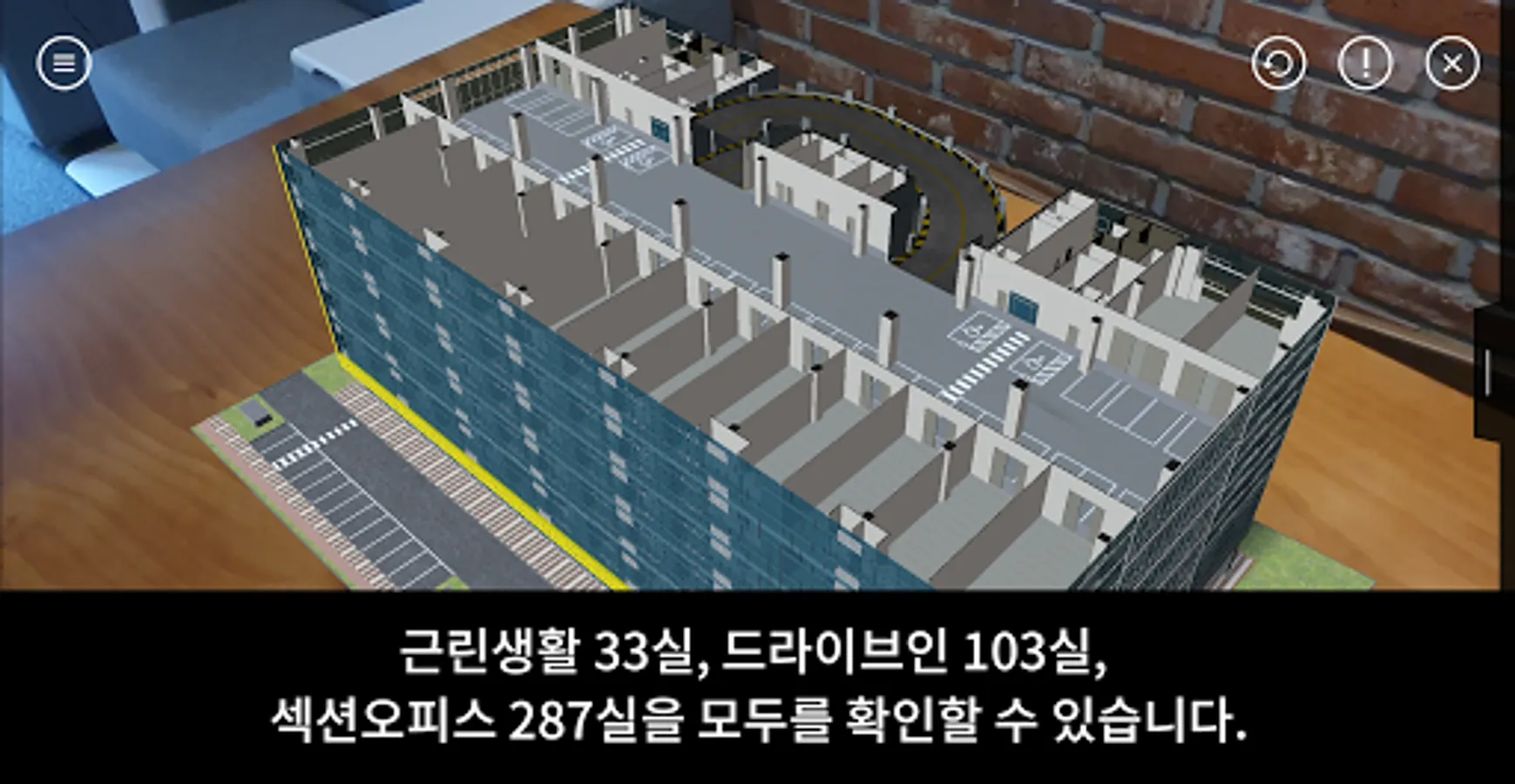 공된 건물을 버드뷰(bird view)시점및 층별 조감도를 확인할수 있으며,