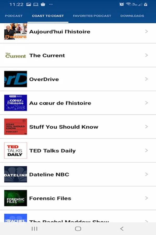 Thank you for giving us the opportunity to install ourselves and remember that if in Coast To Coast you need a podcast that we add, just write to us and we will gladly put it on the main list of the app