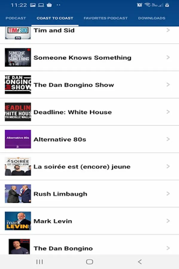 We invite you to download the Coast To Coast Podcast app in which you could listen and download to your cell phone the best shows at the moment not only from your country, if not from all over the world, you just have to search for your favorite program since the app performs a fast and accurate search of all podcasts