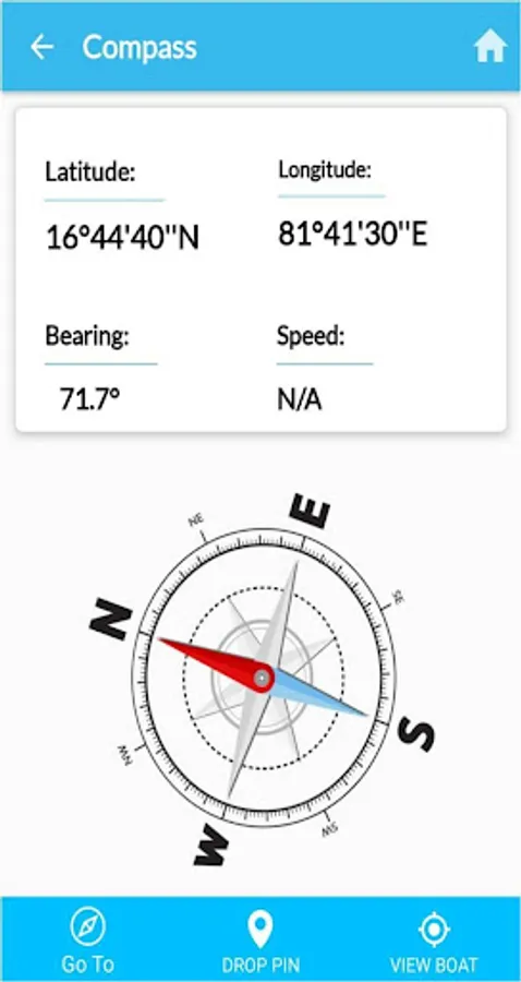 Compass - Using this Feature, The Boat driver/Owner can view the high precision compass that shows the cardinal directions, Latitude/Longitude,speed and Bearing.