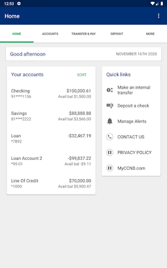 CCNB's mobile banking app puts banking at your fingertips. Download the app today! To use this app, you must be enrolled in online banking. Visit us online at MyCCNB.com to learn more and view our privacy policy. Questions? Call CCNB Toll-Free 1-866-418-9219.
