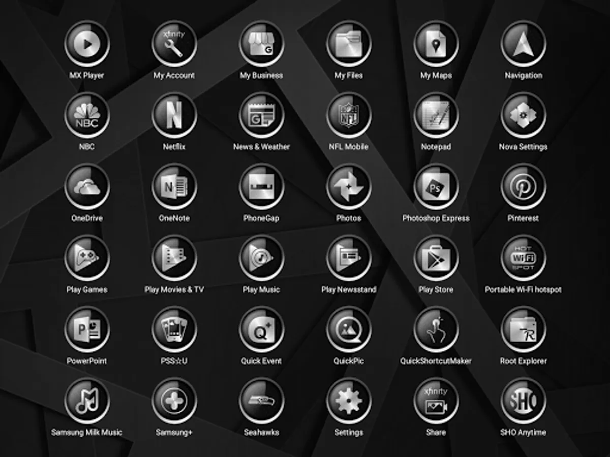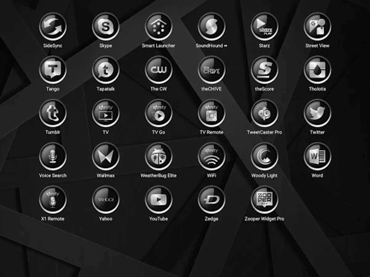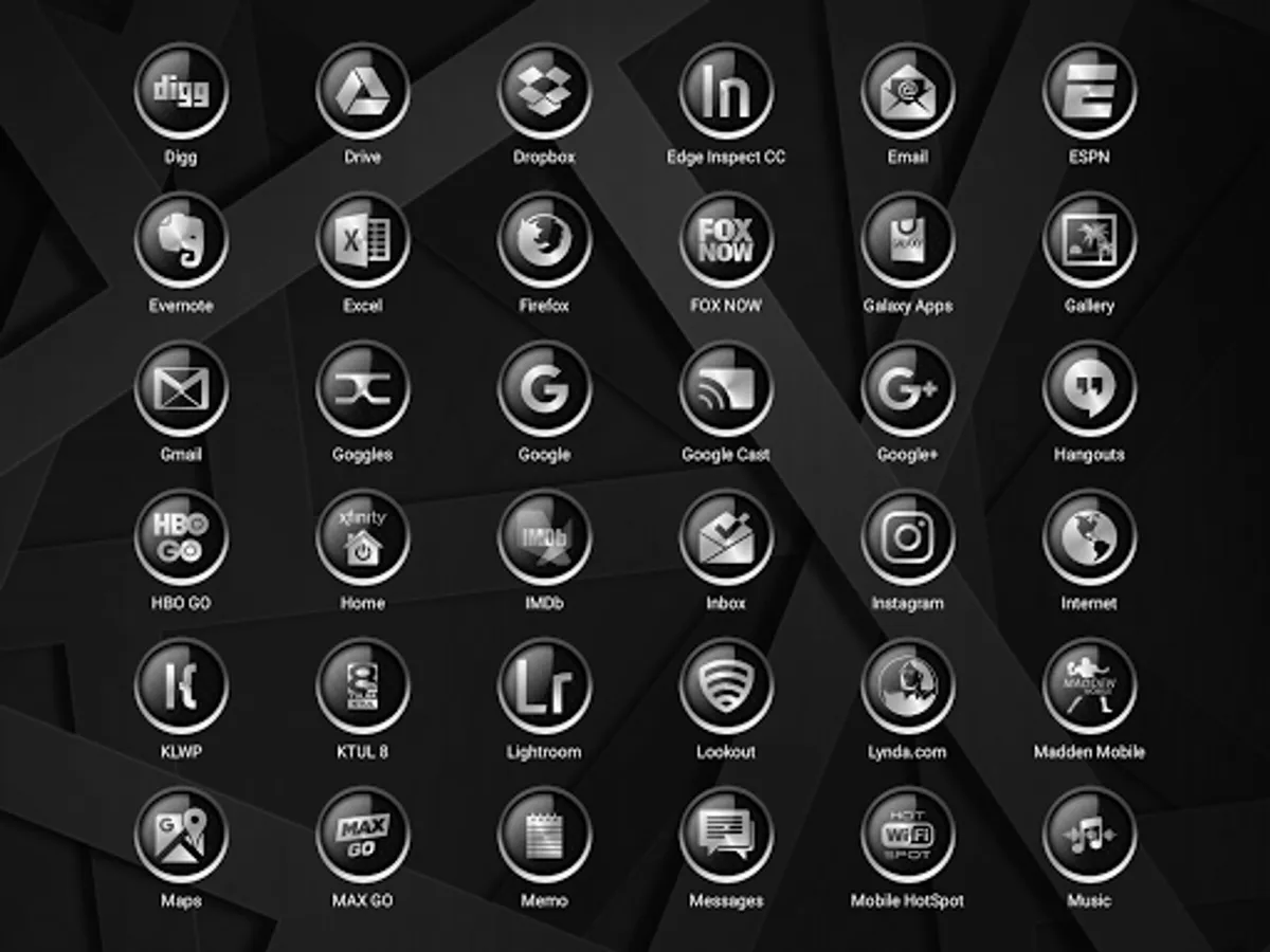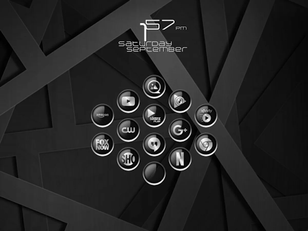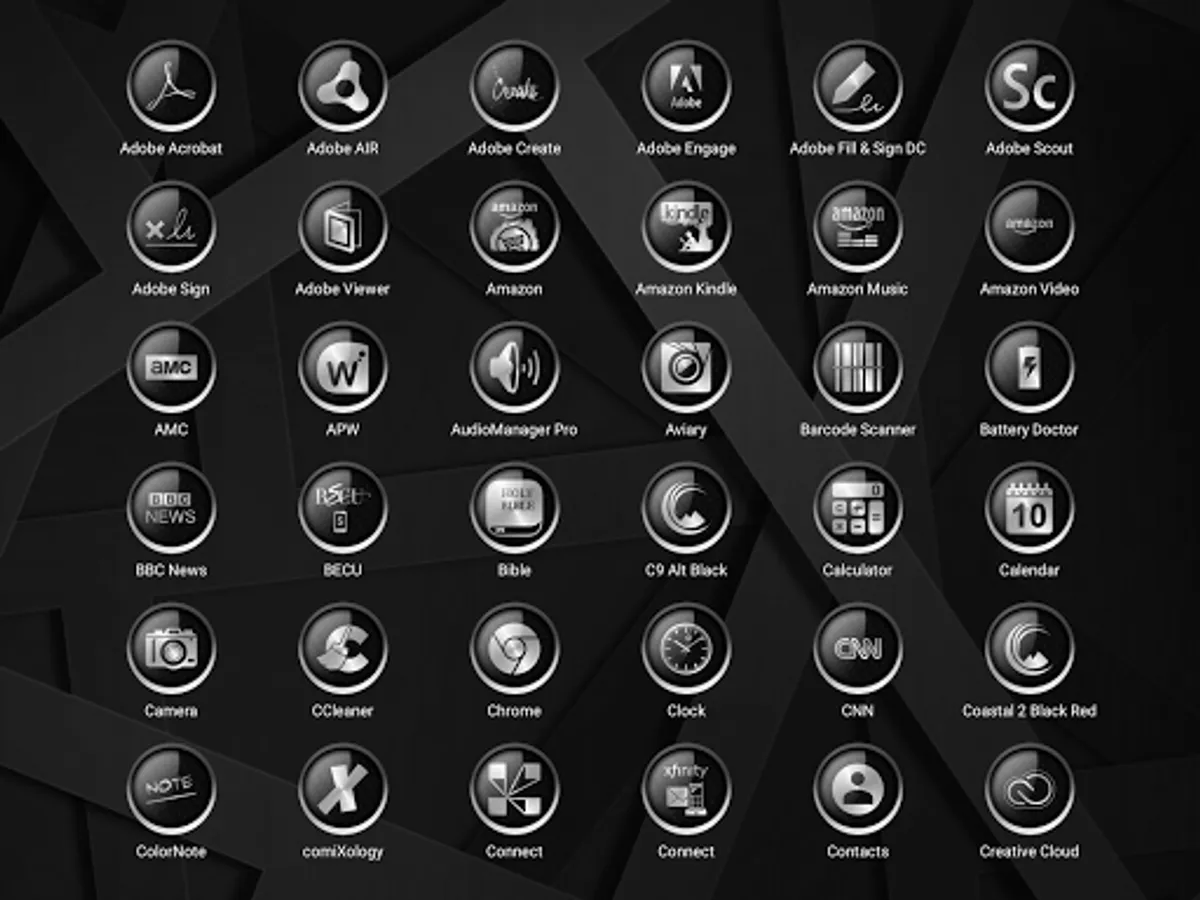 C9 Alt Black Icon Pack It is a graphics heavy design that stands out. The icons are at 120% in the phone screen shots and 110% in the tablet screens. They were enlarged using the launcher settings. These icons look fantastic at the larger settings....