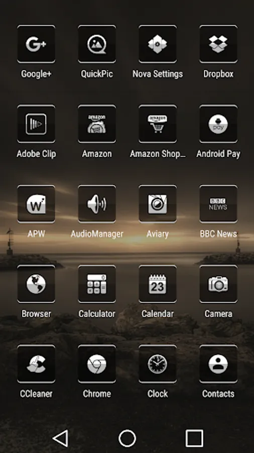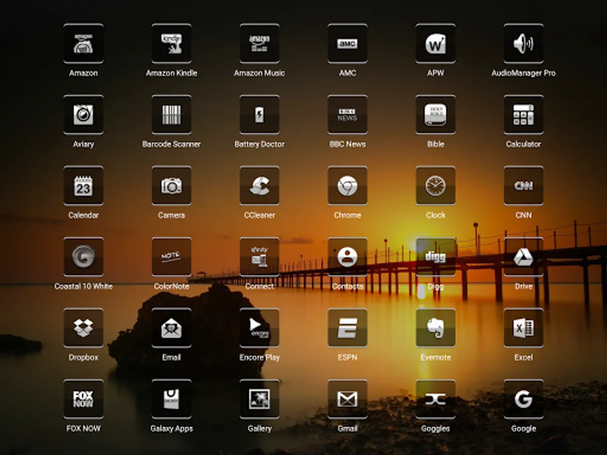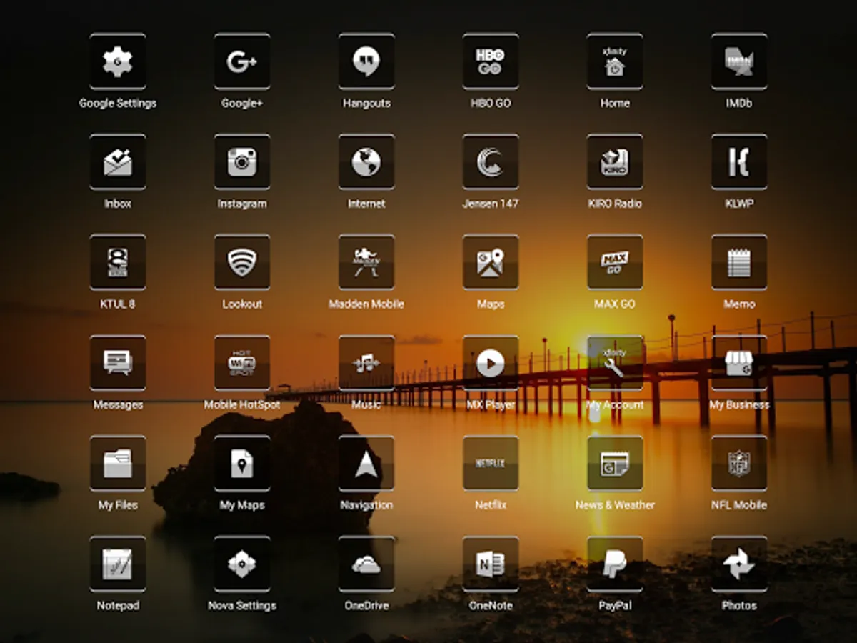 Jensen 147 - Icon Pack based on a square design using transparency to reveal your wall of choice behind the icons.