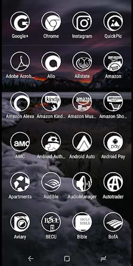 Simp Dark White - Icon Pack Very simple clean design with a bit of "out of sort" feel to it. This set uses a semi-transparent base to allow your wallpaper to seep through.