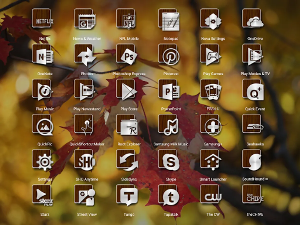 Slipped Wood - Icon Pack These look the best when you scale the icons with your launcher of choice I used Nova Prime and they are at 130% in the screens. They even look great at default size. Thanks to Cliff Phillips for the request.