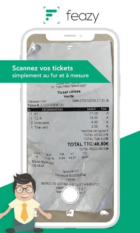 Feazy simplifies the capture, transmission and management of expense: restaurant, gasoline, tolls, hotel, transport ...