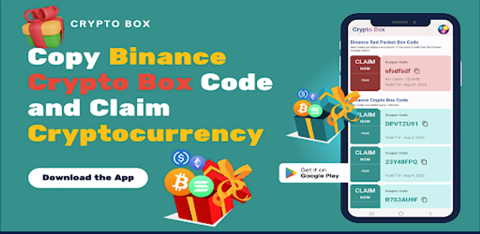 Crypto box App is fun app with collections of Coupon codes, which You can use to claim Cryptocurrencies.
