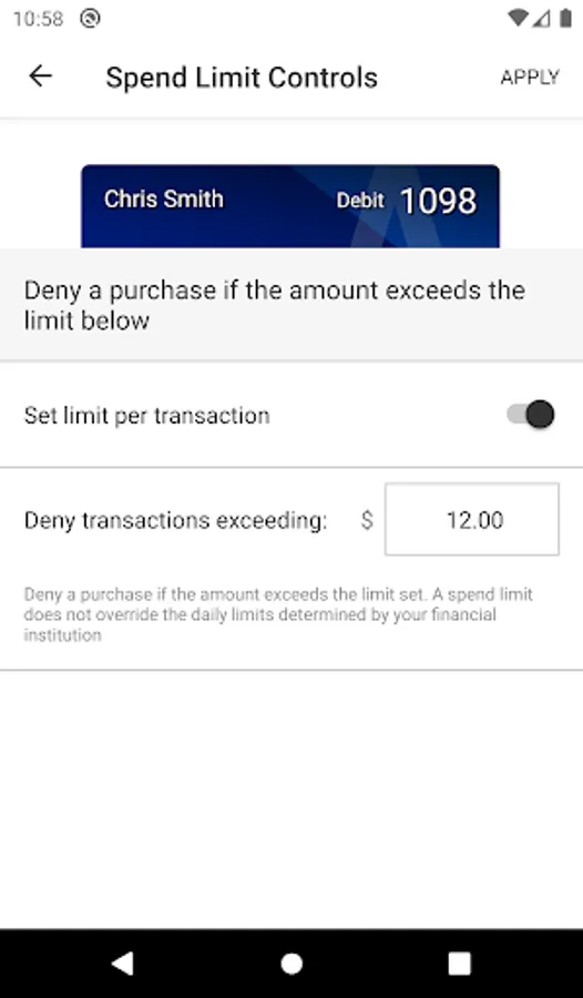 The My Location control can restrict transactions to merchants located within a certain range of your location (using your phone’s GPS); transactions requested outside of the specified range can be declined. The My Region control uses city, state, country or zip code on an expandable interactive map; transactions requested by merchants outside of a specific region can be declined.
