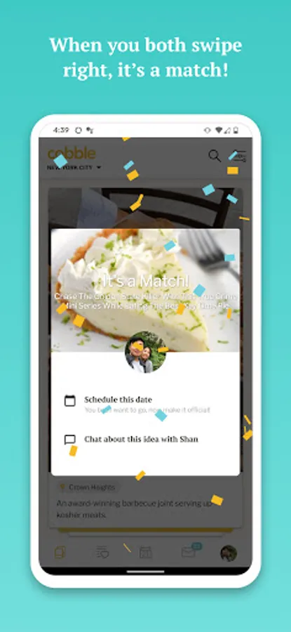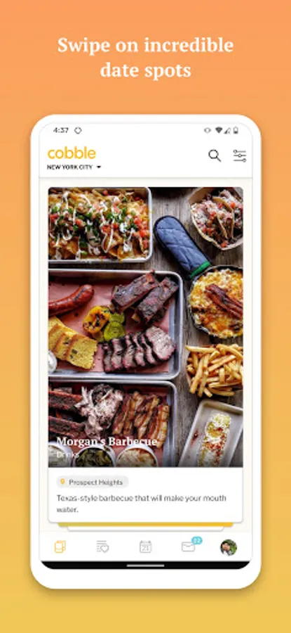 Cobble helps people in relationships figure out where to eat and what to do. Swipe right on an idea if you love it, swipe left if you don't. When you and your significant other both swipe right, it's a match! You'll discover incredible restaurants, bars, special events and more—all while staying connected to your partner in a new, fun way. You'll never ask each other "What do you want to do tonight?" again.