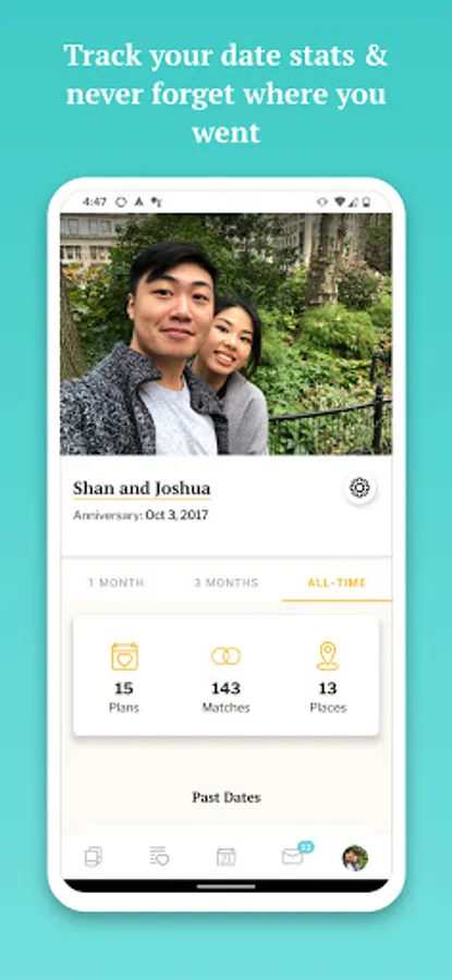 ~ Keep track of your date night stats—like how many places you've been to together this month.