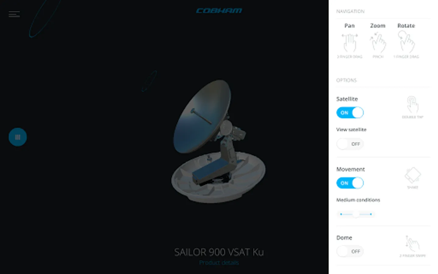 The Cobham SATCOM 3D Catalogue app lets you and your customers view Cobham SATCOM products with incredible detail in Augmented Reality.