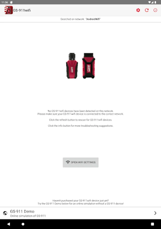 Haven't purchased your GS-911wifi device just yet? Try the GS-911 Demo from within the app for an online simulation without a GS-911 device!