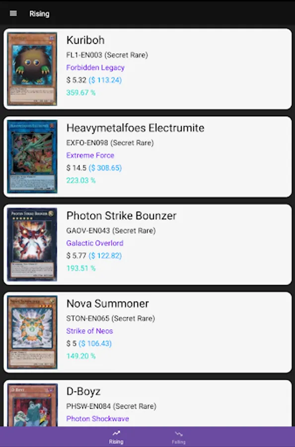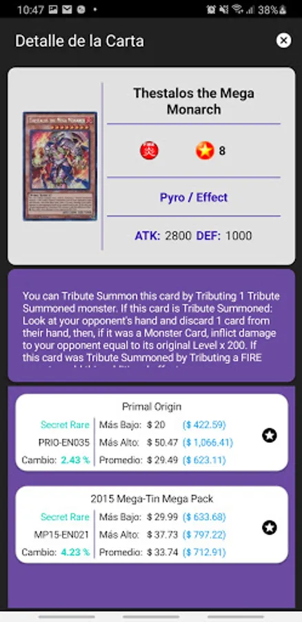 Monarch Prices es una aplicación pensada para que los jugadores de Yu-Gi-Oh! Puedan consultar los cambiantes precios de las cartas, de forma amigable y con una interfaz completamente intuitiva.