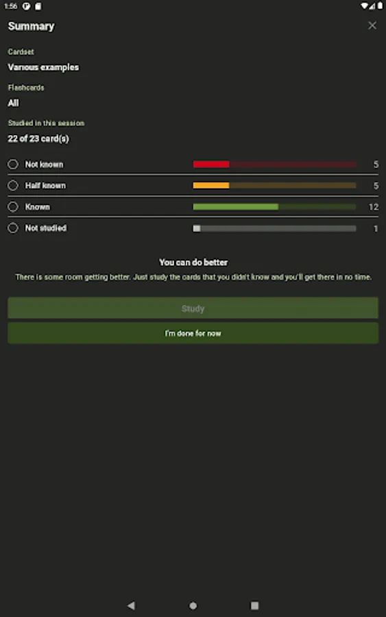 Example flashcards are available in the App.