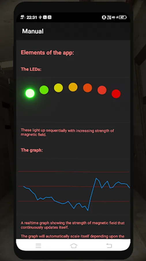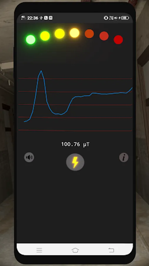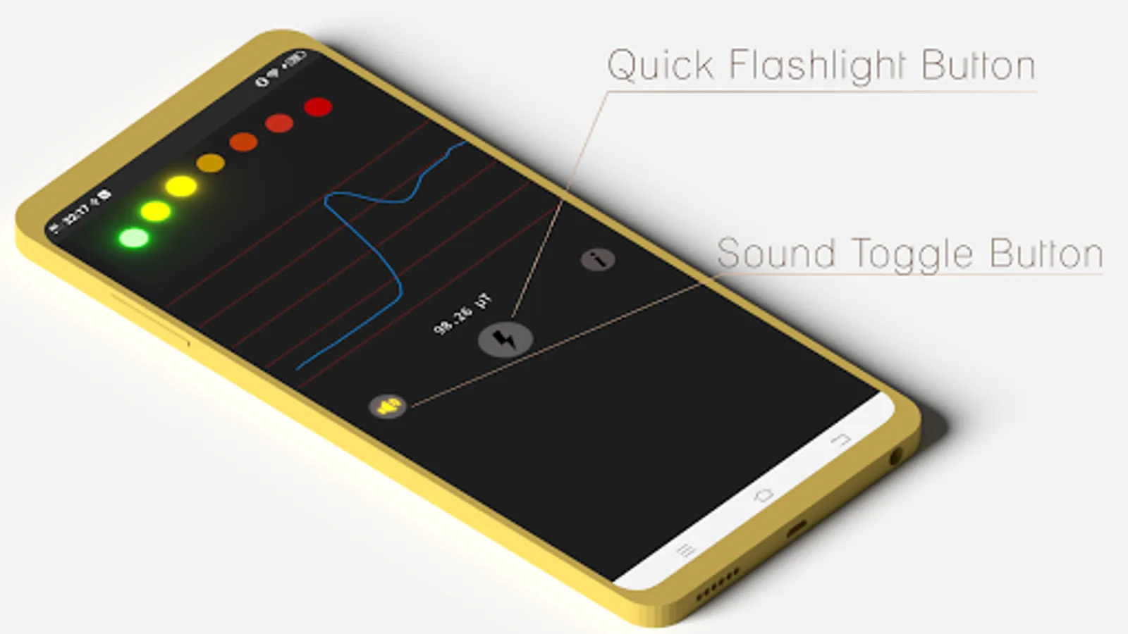 True EMF Detector is an Electromagnetic-Field (EMF) detector app that uses the built-in magnetic field sensor of your device to show the data received from it on a LED indicator display and a graph that updates in realtime. It also includes a flashlight button to quickly use the flash to see around in the dark.
