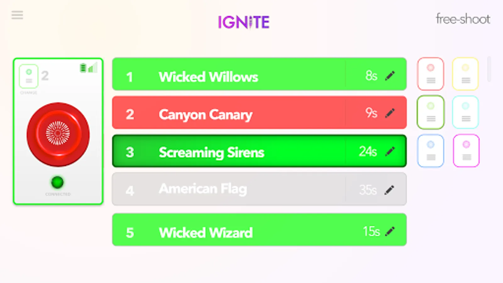 Using free-shoot, your phone becomes a video game controller for shooting fireworks. Choose a module, press buttons, and light up the sky.