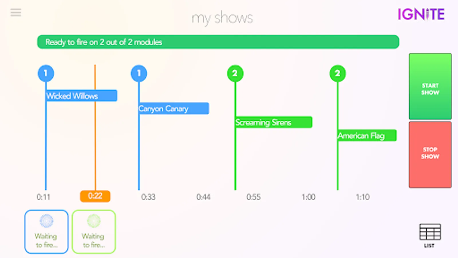 Putting on a big show? We understand the time it takes to research, purchase, sort, and setup your fireworks. With IGNITE, it's all about the preparation. Design your show, calculate the proper timing, layout, and connect your fireworks to the system in advance to make the execution of the show flawless and stress-free.